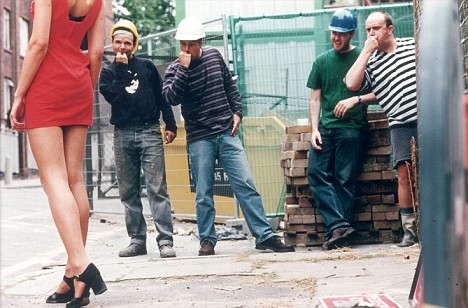 CONSTRUCTION WORKERS EYEING UP LONG LEGGED GIRL AS SHE WALKS PASWhy do women dress sexy so people will look at and desire them but get mad when people look at and desire them? And then they call men who look at them “creeps” or “perverts” for looking at the skin and other body parts they are showing?