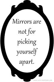 Mirrors inform us of our appearance. They tell us when we have spinach in our teeth or when we have our first gray hair. They give us knowledge of what we look like and information about who we are. Mirrors can be a tool to help us decide which clothes we like or which shoes go best with which outfit. The problem arises when we use information we glean from looking into a mirror to hurt, degrade, or criticize ourselves. A positive self-image is vital and should never be compromised by a mirror.