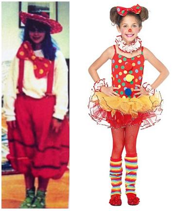 As others have mentioned, every single one of the modern costumes feature short skirts and the clown costume even features spaghetti straps on the top. Most of these costumes would not pass school dress code requirements. In fact, the modern costumes in the images on the right look like the women’s costumes normally labeled “sexy fill in the blank.” Children are being marketed to as if they are miniature adults. There is little difference between the styling of the children’s costumes and the styling of women’s costumes except perhaps that women’s costumes are even shorter.