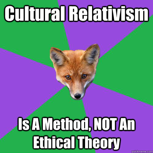 Cultural relativism provides a useful perspective, unless someone is being exploited and hurt. I’m not a moral relativist.